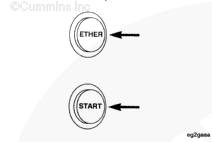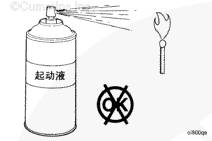 起動發(fā)動機(jī)時起動液不能過量。使用過多的起動液將損壞發(fā)動機(jī)。對于配備有 Prelub 系統(tǒng)的發(fā)動機(jī),在發(fā)動機(jī)開始拖動前不要使用乙醚。
