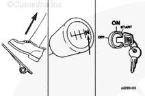 注: 對于配備有 Prelub 系統(tǒng)的發(fā)動機(jī),將鍵固定在”START”(起動)位置以增大機(jī)油壓力。