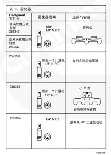 在進氣歧管最中央的位置安裝噴霧器以獲得最佳效果。如果這不能實現(xiàn)的話,選擇最靠近燃燒室的部位。空氣喇叭安裝需要節(jié)流孔對向或背向氣流方向 - 達到最大混合度和飽和度,提高起動效率。