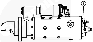 如果馬達中出現(xiàn)機油,在泵側端口 (2) 安裝一個 1.38mPa [200-psi] 壓力表。起動發(fā)動機,并觀察壓力表。如果出現(xiàn)任何壓力指示,更換 PRELUB™ 起動馬達和單向閥。如果沒有指示壓力,更換 PRELUB™ 起動馬達。