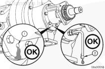 注: 安裝了漏水孔濾清器 (2) 的發(fā)動(dòng)機(jī)濾清器上可能偶爾發(fā)生滴落或輕微化學(xué)物質(zhì)堆積。這是正?,F(xiàn)象,并不說明泵滲漏。不要更換水泵,除非確認(rèn)確實(shí)泄漏。