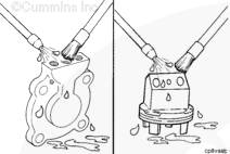 檢查卸荷閥有無積碳。如果有積碳或厚的油泥,拆卸、清潔和檢查壓縮機(jī)缸蓋和閥門總成。如有必要更換零件。需要時(shí)請(qǐng)與康明斯特約維修站聯(lián)系。