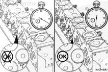 如果缸蓋安裝在發(fā)動機上,確保進氣門處在待檢缸蓋的“閉合”位置。這可通過拖動發(fā)動機實現(xiàn)。當搖臂松動時,這表明進氣門閉合。