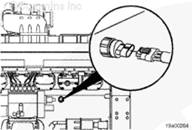 將發(fā)動機(jī)線束 Deutsch 接頭連接到發(fā)動機(jī)線束延長電纜上(如果使用)或者發(fā)動機(jī)線束適配器電纜上。使用一個(gè) 4 mm [5/32 in] 六角扳手?jǐn)Q緊。扭矩值: 3 n.m [27 in-lb]