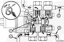 當(dāng)鑰匙開關(guān)斷開時,Bosch® EHAB 裝置斷開,滑閥向相反方向移動。這樣可以防止燃油流入噴油泵油道并同時打開一條通路,使輸油泵將燃油從油道泵出并送回油箱。油道溢流口,燃油溢流,燃油從油道流至輸油泵,已過濾燃油流入,已過濾燃油返回油箱進(jìn)口,