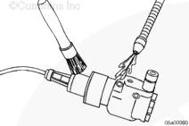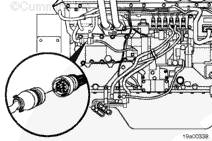 將車輛鑰匙開關(guān)轉(zhuǎn)到斷開 (OFF) 位置。斷開 9-針 Deutsch 噴油泵電氣接頭。不要斷開 2-針 EHAB 裝置接頭