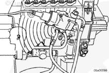 將鑰匙開關(guān)轉(zhuǎn)到 OFF(斷開)位置。從發(fā)動機(jī)線束上斷開 2-針 EHAB 裝置接頭。