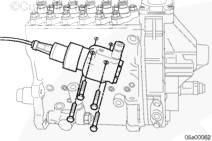 將兩個 O 形圈放置在 Bosch® “EHAB” 裝置上。將 Bosch® EHAB 裝置安裝到噴油泵殼體上。