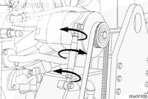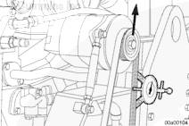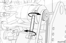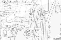 轉(zhuǎn)動(dòng)調(diào)節(jié)桿以解除皮帶張力。拆下充電機(jī)皮帶。參考步驟 013-005。