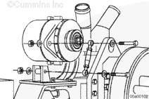 順時(shí)針轉(zhuǎn)動(dòng)調(diào)整螺釘以張緊皮帶。擰緊皮帶。參考驅(qū)動(dòng)皮帶張力 013-005。使用(Burroughs)皮帶張力規(guī)測(cè)量皮帶張力。 QST30 發(fā)動(dòng)機(jī)使用 5 肋 K 形皮帶。
