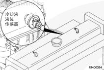 注: 這是一個可選裝的傳感器,不是所有發(fā)動機上都裝有此傳感器。如果沒有使用冷卻液液位傳感器,則安裝一個短接插頭。