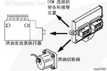 康明斯ECM 處理來自傳感器的信息并控制燃油齒條的運動以控制供油。這一動作控制燃油計量,然后根據最近的發(fā)動機狀態(tài)產生正確的功率和扭矩。