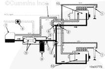升機型 燃油輸油泵 (4) 從客戶燃油油箱或常用油箱 (1) 中抽出燃油。燃油通過康明斯或客戶預濾器(2)和燃油連接塊(3)循環(huán)。然后燃油流入燃油輸油泵(4),在輸油泵中增壓,并通過發(fā)動機上的燃油濾清器(5)循環(huán)。燃油流過燃油切斷閥 (6),然后流入噴油泵 (7),噴油泵使燃油達到噴油壓力并在適當的時間將燃油輸送到每個噴油器 (9)。