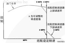 下部調(diào)速率 — 此特性允許實(shí)際車速在輕負(fù)荷條件下(比如,下坡)從巡航控制速度略微提高。當(dāng)此特性調(diào)整到其最大值 3 mph 時,車輛的動量得到保留,因而應(yīng)產(chǎn)生更好的燃油經(jīng)濟(jì)性。當(dāng)此特性調(diào)整到其最小值 0 mph 時,車輛控制得到保持。