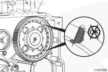 安裝凸輪軸齒輪時,必須將凸輪軸固定在最靠前的位置。如果未將凸輪軸固定在此位置,可導(dǎo)致凸輪軸齒輪不能位于凸輪軸上的正確位置。 |