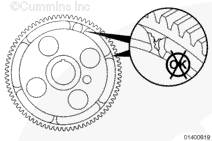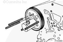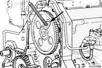 如果凸輪軸齒輪已更換,檢查噴油器正時;加工公差可造成正時超出技術(shù)規(guī)范。參考第 6 節(jié)中的步驟 006-025。安裝凸輪軸惰輪。確保所有的正時標(biāo)記都正確匹配。