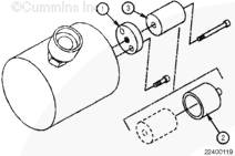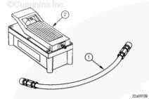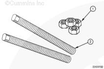 將零件號為 3163766 的隔圈底座 (1) 置于 30 噸液壓缸(零件號 3163551)的中間。使用兩顆內(nèi)六角頭螺栓進行固定。將零件號為 3164201 的隔圈 (3) 固定于帶有內(nèi)六角頭螺栓的隔圈底座(零件號 3163446)上。隔圈 (3) 可用于其他發(fā)動機類型。檢查液壓缸有無泄漏和任何損壞的跡象。