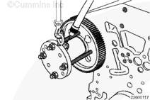 如果需要,旋轉(zhuǎn)曲軸以使凸輪軸齒輪上的孔與止推板上的螺栓孔相通安裝兩顆止推板安裝螺栓。擰緊螺栓。扭矩值: 45 n.m [33 ft-lb]