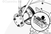 檢查并記錄鍵相對于凸輪軸齒輪旋轉(zhuǎn)方向的偏移方向(相同或相反)。拆卸鍵。