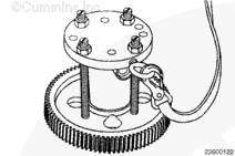 注: 確保座圈法蘭的平面緊靠凸輪軸齒輪轂的輻條。這將使拆卸器爪恰好位于凸輪軸齒輪的背面。