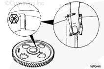 齒輪安裝到凸輪軸上以后,凸輪軸齒輪上的正時標(biāo)記必須從齒輪前方可以看到。