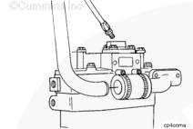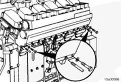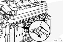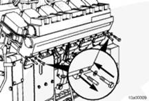 將密封墊安裝在左排中冷器供應(yīng)管和回水管的端部。安裝螺栓。扭矩值: 65 n.m [48 ft-lb]