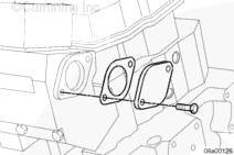 將密封墊安裝到回水管法蘭上。安裝螺栓并擰緊。扭矩值: 65 n.m [48 ft-lb]