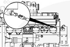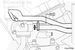 注: 檢查是否有兩個管塞安裝在左排中冷器供應(yīng)管法蘭上。如果沒有安裝,使用 Loctite(零件號 3375066)安裝管塞并擰緊。