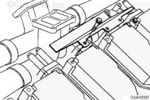 注: 可能需要適度轉(zhuǎn)動空氣跨接管適配器,以便和渦輪增壓器壓縮機的法蘭對準。利用 6-mm 螺栓和適配器上的埋頭螺孔進行轉(zhuǎn)動。