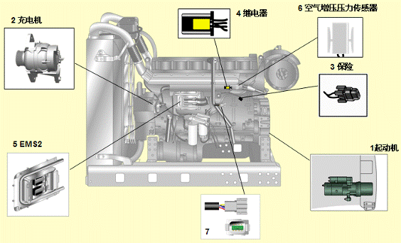 • EMS2(發(fā)動(dòng)機(jī)管理系統(tǒng))是一個(gè)具有CAN(控制器區(qū)域網(wǎng)絡(luò))通信功能的電子系統(tǒng),用以實(shí)現(xiàn)對(duì)柴油機(jī)的控制。