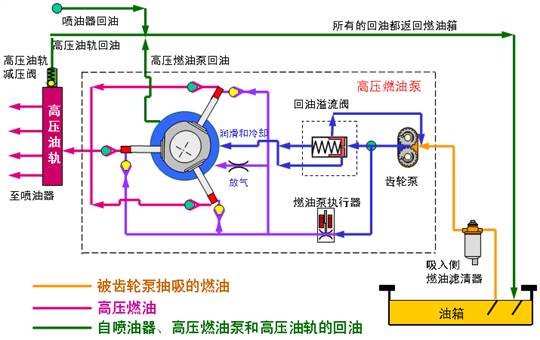 • 部分燃油經(jīng)燃油溢流閥去潤(rùn)滑高壓燃油泵