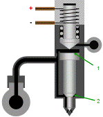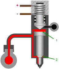 • 相同的燃油壓強(qiáng)施加在柱塞頂面 (1)和針閥凸臺(tái)區(qū)域 (2) 上