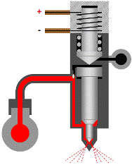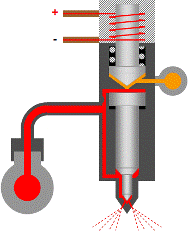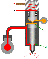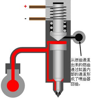 • 噴油器電磁閥未通電,電磁閥彈簧使電磁閥鐵芯保持在關(guān)閉的位置