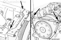 拆下起動馬達(dá)。參考第 13 節(jié)中的步驟 013-020。拆下變速箱和所有相關(guān)部件,如果配備。參考 OEM 維修手冊。如果配備,拆卸飛輪。參考第 16 節(jié)中的步驟 016-005。拆下柔性連接盤總成(如果配備)。參考第 16 節(jié)中的步驟 016-004??赡苄枰鹣虑S通氣管。參考第 3 節(jié)中的步驟 003-018。拆下任何由 OEM 安裝在飛輪殼上的部件(消聲器、換檔機(jī)構(gòu)、空氣濾清器,等)。參考 OEM 維修手冊。拆下飛輪殼。參考第 16 節(jié)中的步驟 016-006。