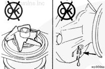 如果以下系統(tǒng)之間存在泄漏,冷卻系統(tǒng)和潤滑系統(tǒng)的工作壓力將使機(jī)油和冷卻液混合: 缸蓋密封墊、機(jī)油冷卻器等(參考第 7 節(jié)中的步驟 007-037。