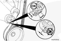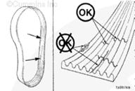 檢查皮帶張緊器皮帶輪上傳動(dòng)皮帶的位置。皮帶應(yīng)位于皮帶輪的中間,或靠近中間。未對準(zhǔn)的皮帶、無論太靠前或太靠后,都可能造成皮帶磨損、皮帶滾動(dòng)故障或增加不均勻的張緊器襯套磨損。