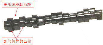 凸輪軸上既有配氣機構的凸輪,同時兼有高壓泵驅動凸輪。
