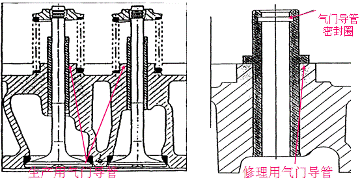 3、新機的氣門導管沒有定位肩。但修理時為了準確定位,氣門導管是帶定位肩的(原裝發(fā)動機)。氣門導管密封圈鑲嵌在導管內。