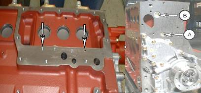 1、檢查缸體上水泵下面的螺栓A(M22*1.5mm在主油道上)可導(dǎo)致機油進入冷卻系統(tǒng)。