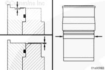 大外徑缸套不會(huì)裝入小缸徑缸體中;但是,小外徑缸套可裝入大缸徑缸體中并可能導(dǎo)致故障出現(xiàn)。 |