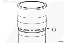 如果康明斯ISX15 CM2250發(fā)動(dòng)機(jī)配有工廠墊片調(diào)整缸套,則必須安裝新工廠墊片 (1)。