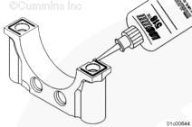 如圖所示,在每個康明斯ISX15 CM2250發(fā)動機(jī)主軸承蓋上的 2 個主軸承蓋表面涂上一層 U 形 Loctite™ 518 螺紋密封膠。