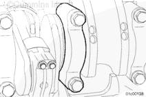 主軸承蓋的連接配合面只能使用 Loctite™ 518 螺紋密封膠。其他密封膠可能變硬、變脆,從而使機(jī)和碎屑進(jìn)入到主軸承/缸體接合處,從而造成發(fā)動機(jī)損壞。