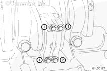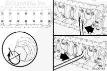 將康明斯ISX15 CM2250發(fā)動機(jī)主軸承蓋上的兩個螺釘擰緊到 203 N•m [150 ft-lb]。