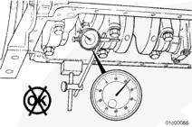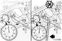 若要測量康明斯ISX15 CM2250發(fā)動機(jī)曲軸的軸向間隙,應(yīng)在油底殼安裝法蘭上安裝千分表。