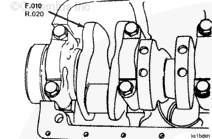 主軸承蓋上標(biāo)記有“V”字樣。使“V”標(biāo)記指向發(fā)動機(jī)的前面。定位不正確會導(dǎo)致發(fā)動機(jī)嚴(yán)重?fù)p壞。