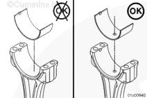 將康明斯ISX15 CM2250發(fā)動機(jī)上軸瓦裝入連桿中,軸瓦定位舌座入連桿上的槽中。