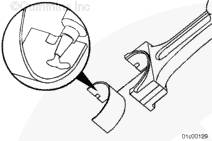 注: 連桿必須能夠在曲軸軸頸上橫向移動自如。如果連桿不能移動自如,拆下連桿蓋,然后確保軸瓦的尺寸正確。檢查曲軸和軸瓦上有無污垢或損壞。