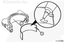 將康明斯ISX15 CM2250發(fā)動機(jī)軸瓦安裝在連桿蓋中,軸承的定位舌(2)座入蓋上的槽(1)中。