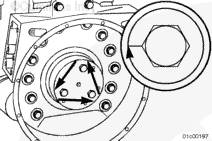 每次擰緊螺釘不超過 ½ 圈,順時針擰緊螺釘直至安裝工具與飛輪殼緊密配合。